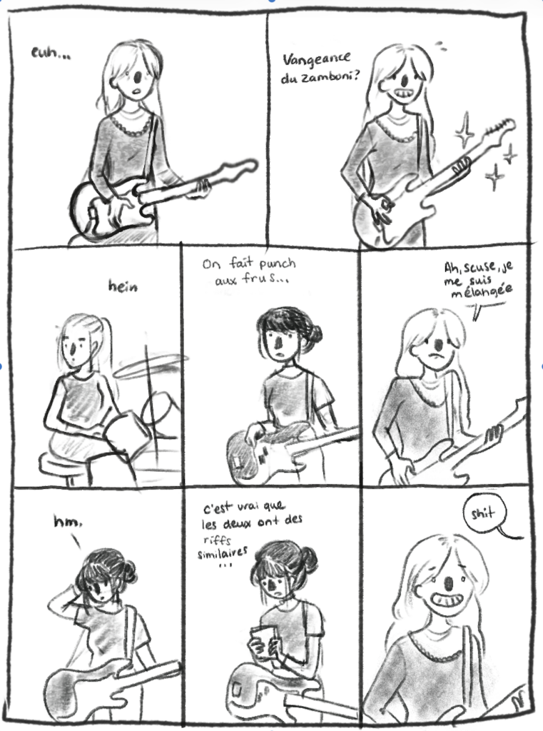 J’espère que ça va m’aider. En tout cas, pour l’instant je pense que oui. J’ai quelques bulles de fait et là faut que je dessine ce qu’il y a dedans. À voir!!!