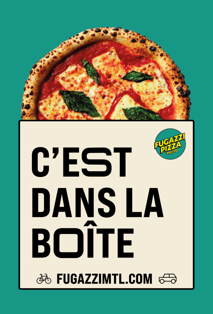 Au début du mois j’ai remis un gros projet. J’ai travaillé fort dessus et je voulais vous le montrer! Une grosse campagne publicitaire avec Espace M pour les pizzéria Fugazzi. Ils ont 3 succursales à Montréal et mes affiches sont affichées(lol) dans les quartier avoisinants.