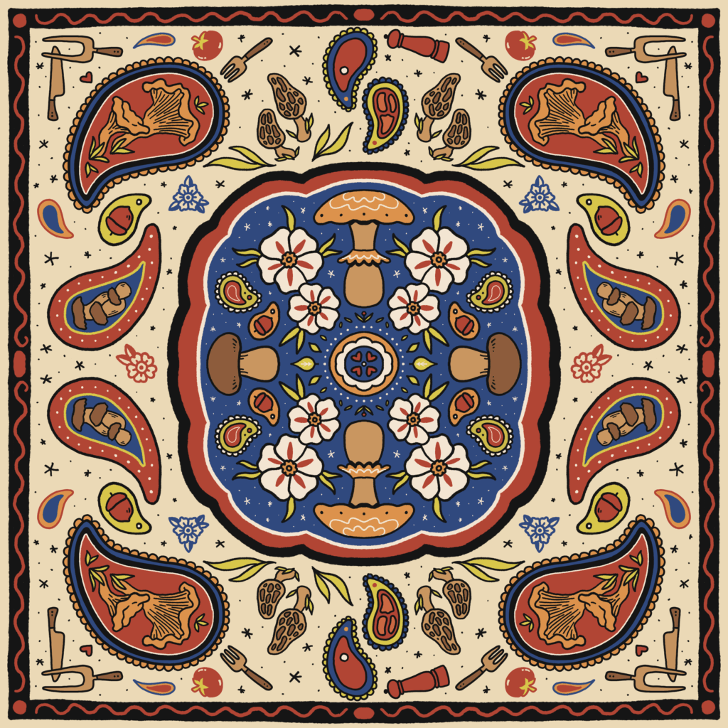 On m’a demandé de faire un bandana à effigie de champignons pour une soirée spéciale. C’était cool à faire. Voilà, c’est tout.